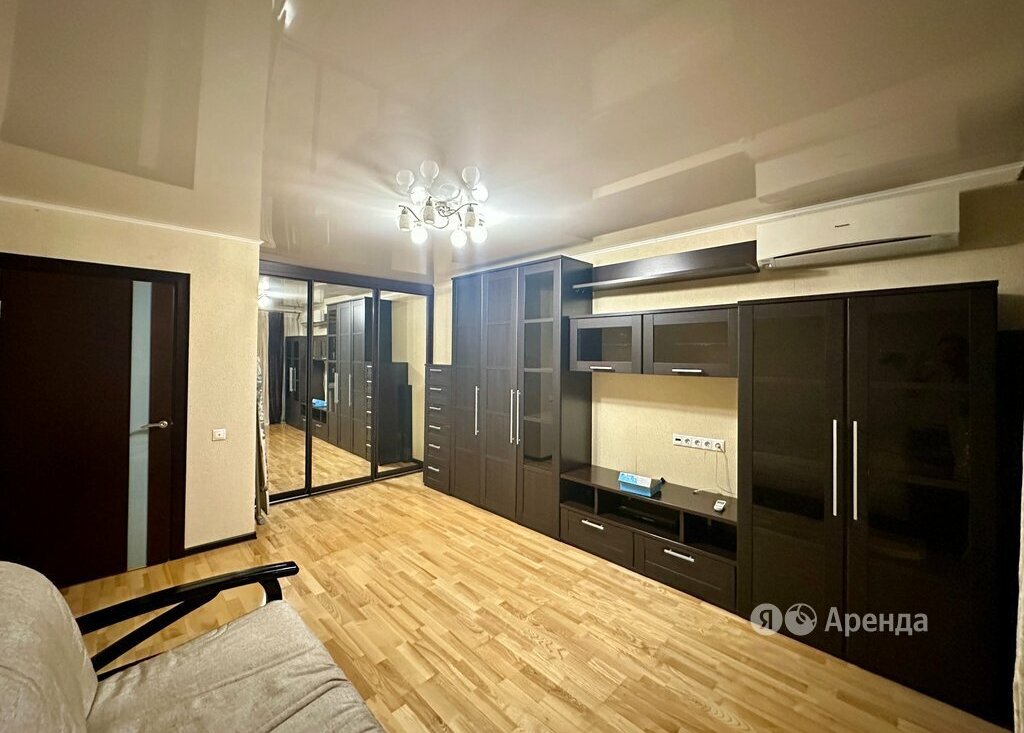 Сдаётся 1-комнатная квартира площадью 35 кв.м. с косметическим ремонтом на 9 этаже в 12-этажном доме на срок от 11 месяцев. Из техники есть: