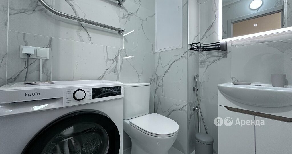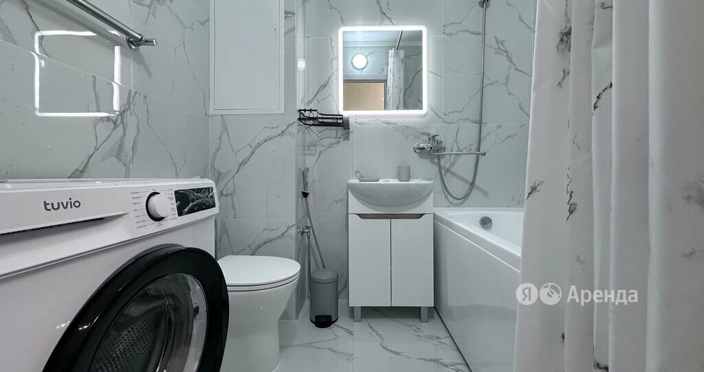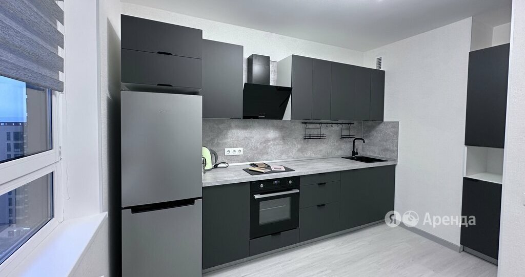 Сдаётся 1-комнатная квартира площадью 38 кв.м. с евроремонтом на 21 этаже в 26-этажном доме на срок от 11 месяцев. Из техники есть: