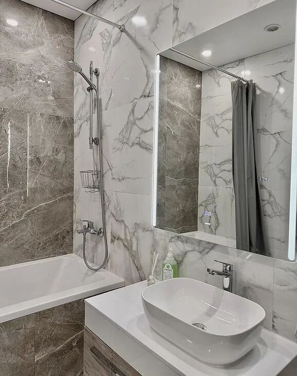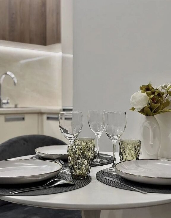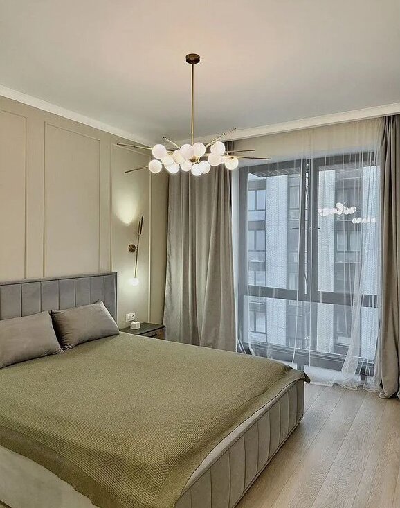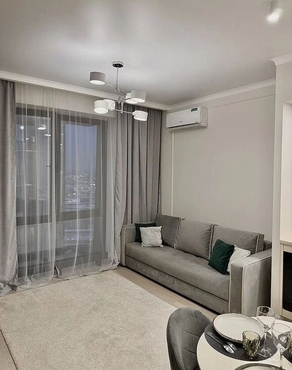 Выполнен качественный евроремонт в современном стиле. Квартира полностью готова к заселению: мебель в жилой зоне и на кухне, вся необходимая техника: кондиционер, холодильник, посудомоечная и стиральная машины, телевизор. В ванной комнате установлена полноценная ванна, можно расслабиться после насыщенного дня.