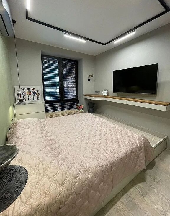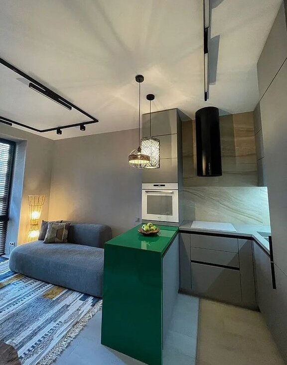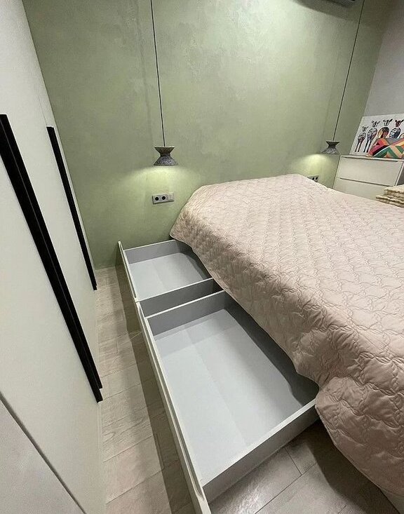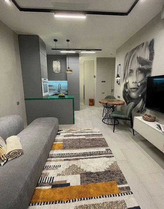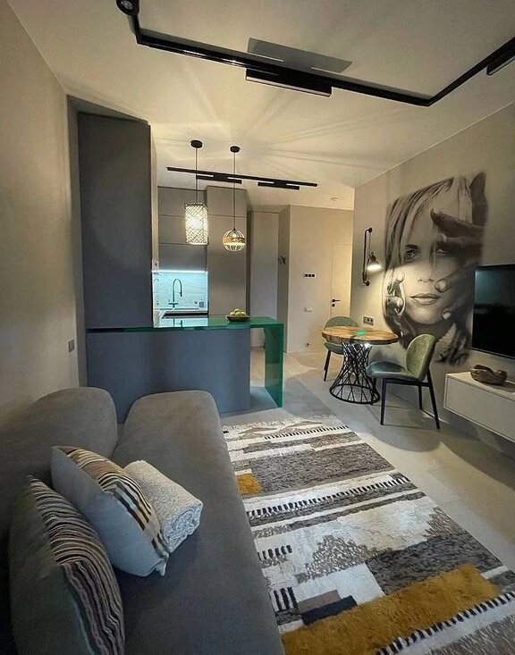 Eврoдвушка – куxня-гocтинaя, пoлноценная спальная комнатa.