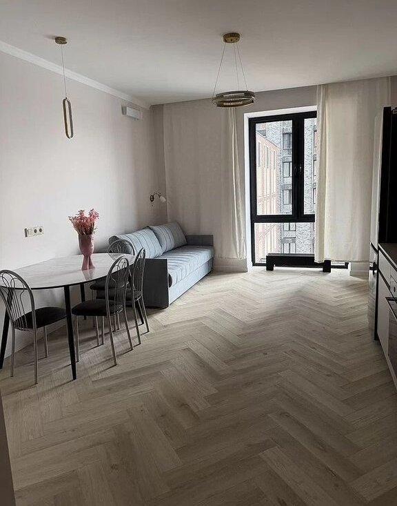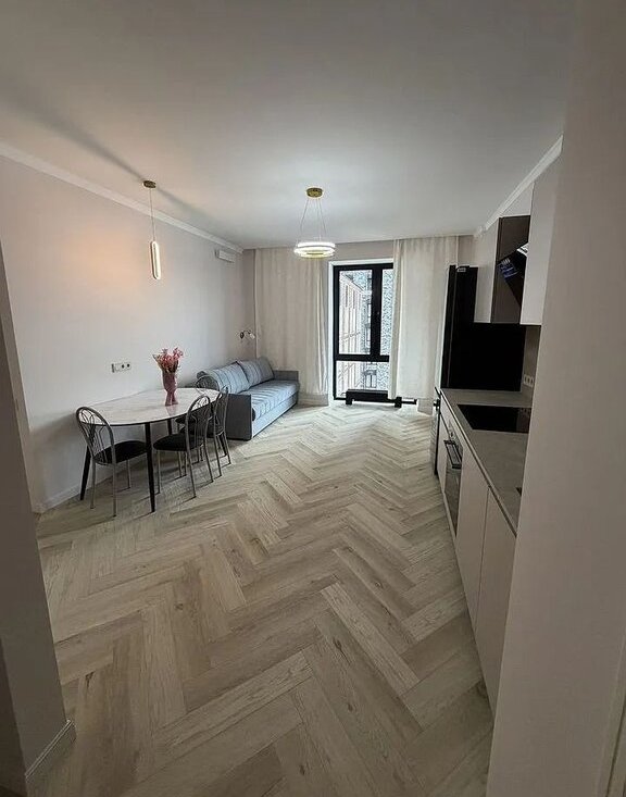 Впервые сдается современная евродвухкомнатная квартира площадью 45,2 м2 с дизайнерским ремонтом от Рintеrеst, панорамными окнами, высокими потолками, кухней-гостиной 20 м2, полностью оборудована всей необходимой мебелью, сантехникой с парящей ванной и техникой: посудомоечная машина, духовой шкаф, холодильник, стиральная машина, телевизор.