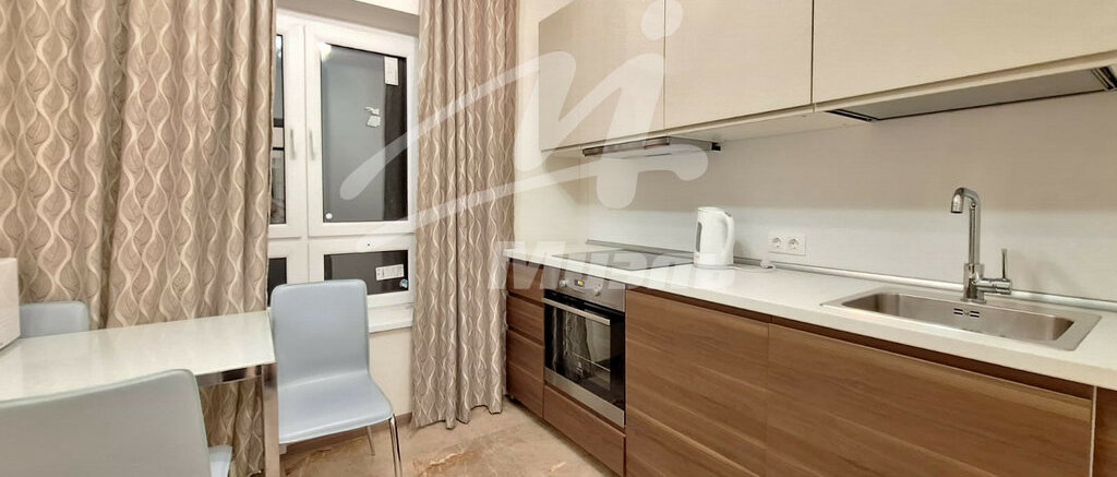 Полностью меблированная: диван, шкаф для одежды, стеллажи, а также бытовая техника, включая посудомоечную машину, кондиционер и пылесос.