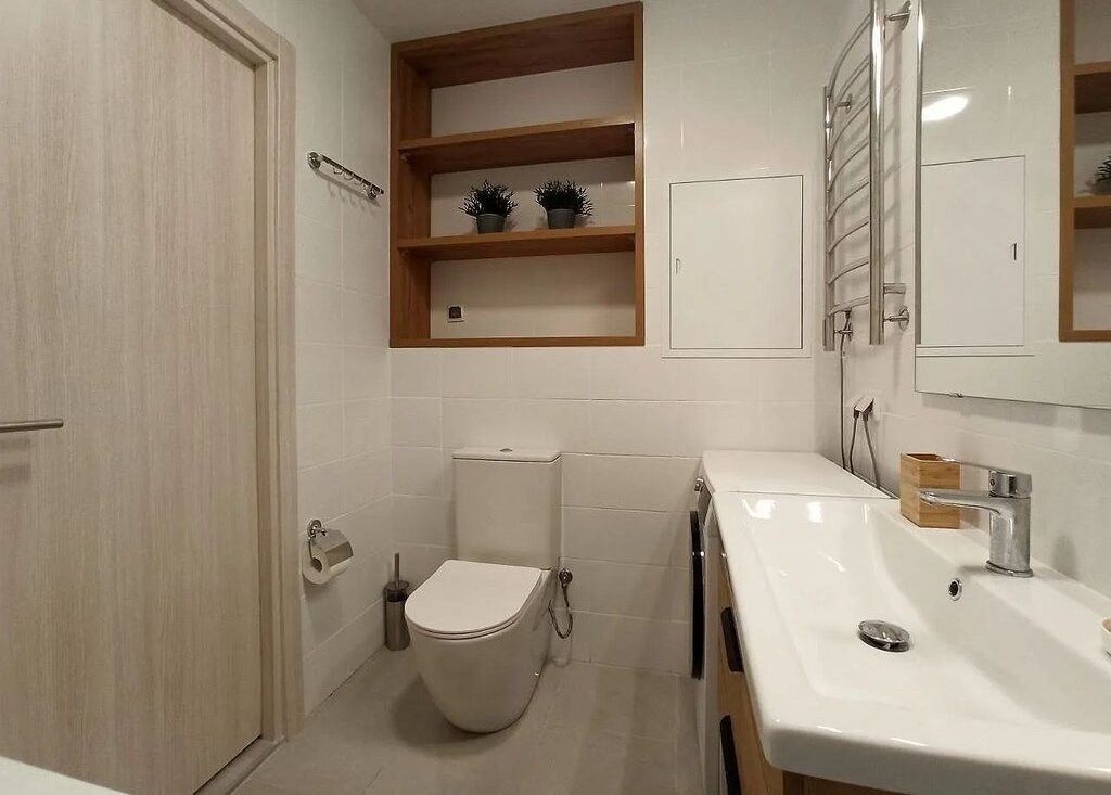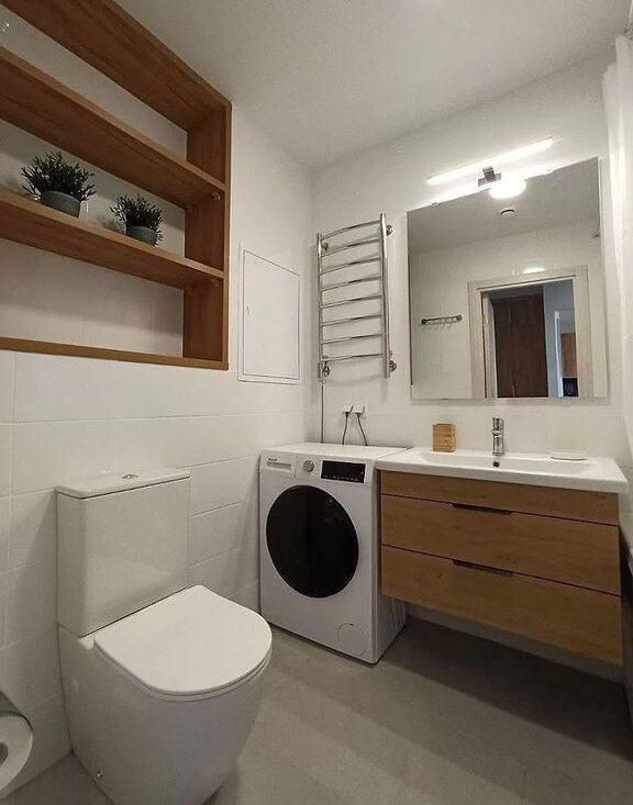 В санузле стиральная машина, электрический полотенцесушитель.