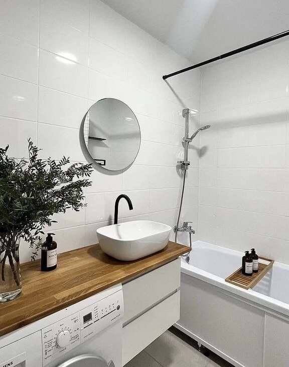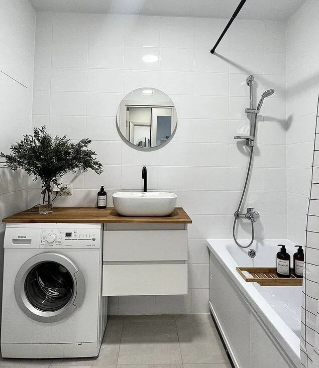 стиральная машинка, тумба, зеркало с сенсорной подсветкой