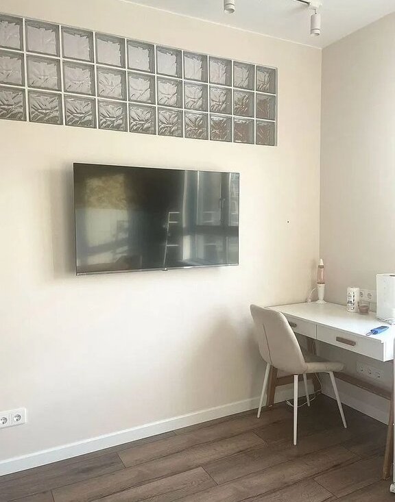 Планировка квартиры: кухня-гостинная ( с местом для работы), отдельная спальня, гардеробная, совмещенный санузел с ванной.