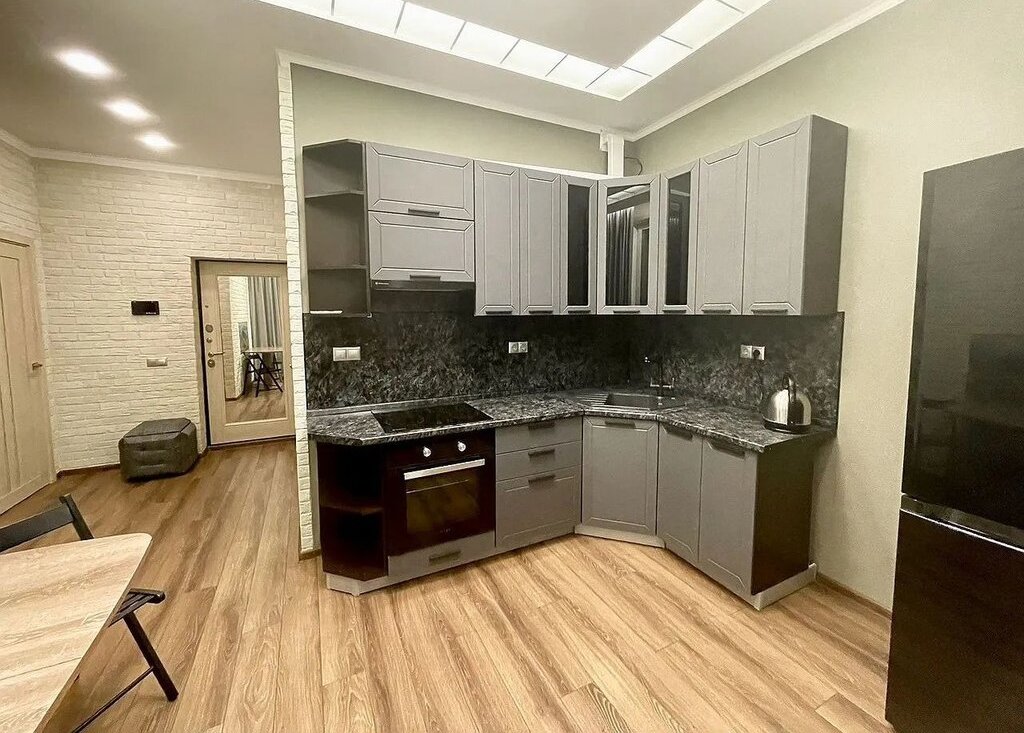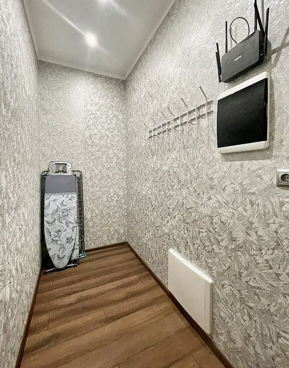 В кваpтиpе тeплыe (обогpевaeмыe) полы, в т.ч. в лоджии и в гардeрoбе; кoндиционeр (с режимом обогрева); видеодомофон; различные варианты подсветок, большое количество подсветок; стеклокерамическая варочная панель, электрический духовой шкаф, встроенная вытяжка, холодильник, электрический чайник; телевизор (смарт), wi-fi; стиральная машина; гладильная доска, утюг.