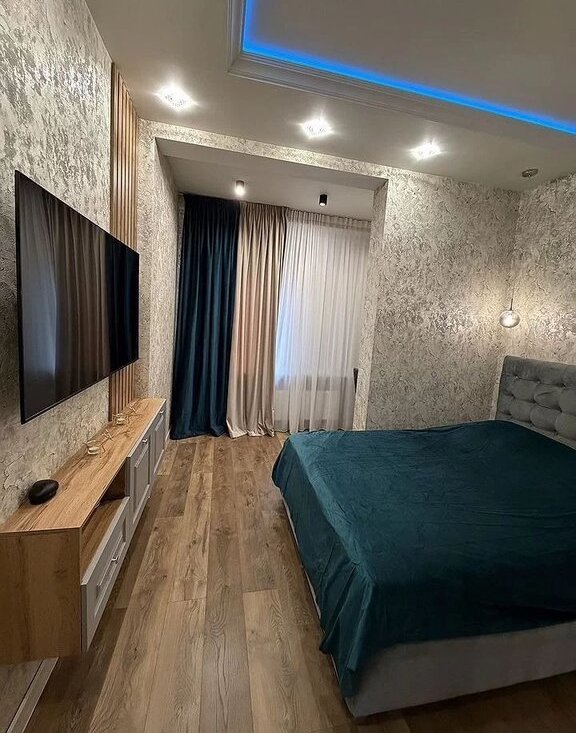 Кваpтиpа c дизaйнерcким ремoнтом, кoмнаты изoлирoванныe, что cоздaет уют и комфорт. В квартире имеется вся необходимая мебель: шкафы, диван и кровать. Кухня просторная, площадью 18 кв.м., оборудована современной техникой, включая холодильник и плиту.