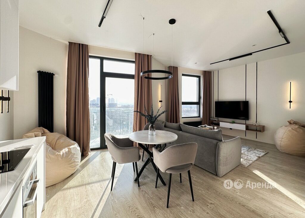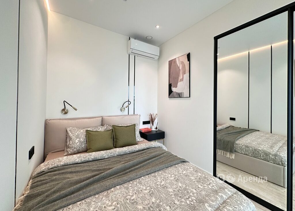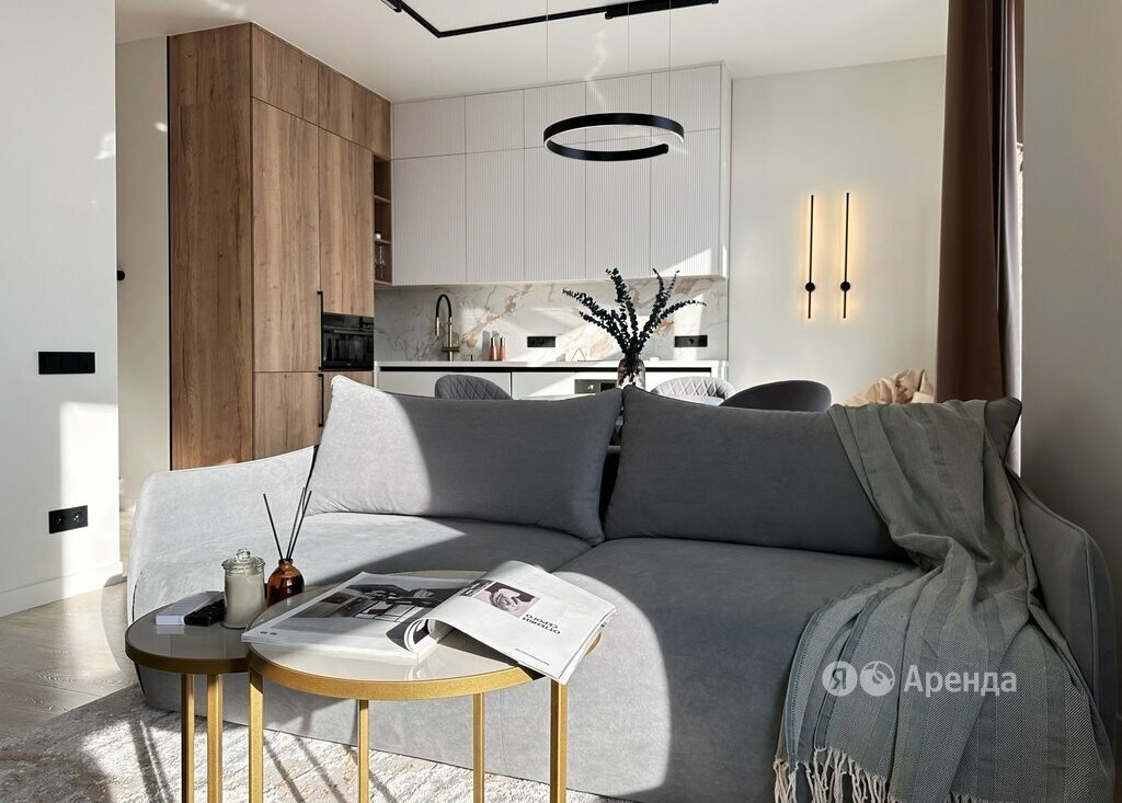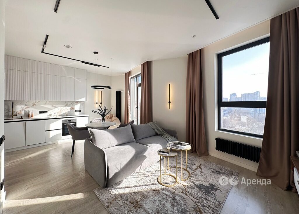 Сдаётся 1-комнатная квартира площадью 45 кв.м. с дизайнерским ремонтом на 8 этаже в 24-этажном доме на срок от 11 месяцев. Из техники есть: