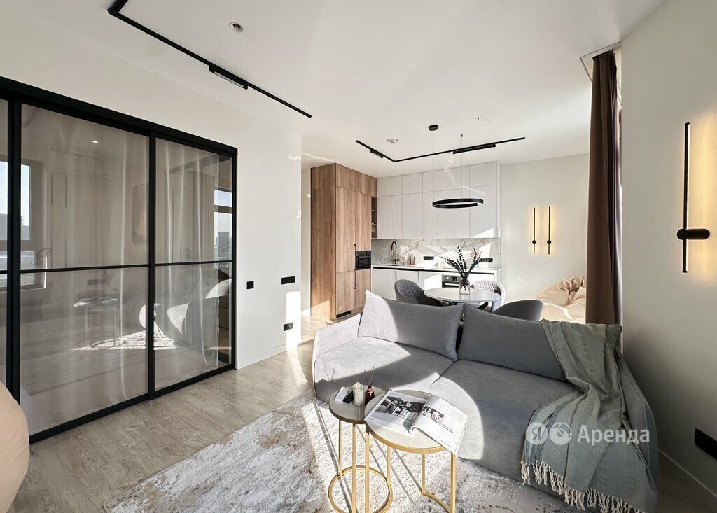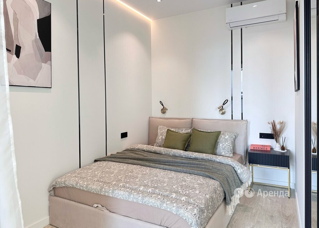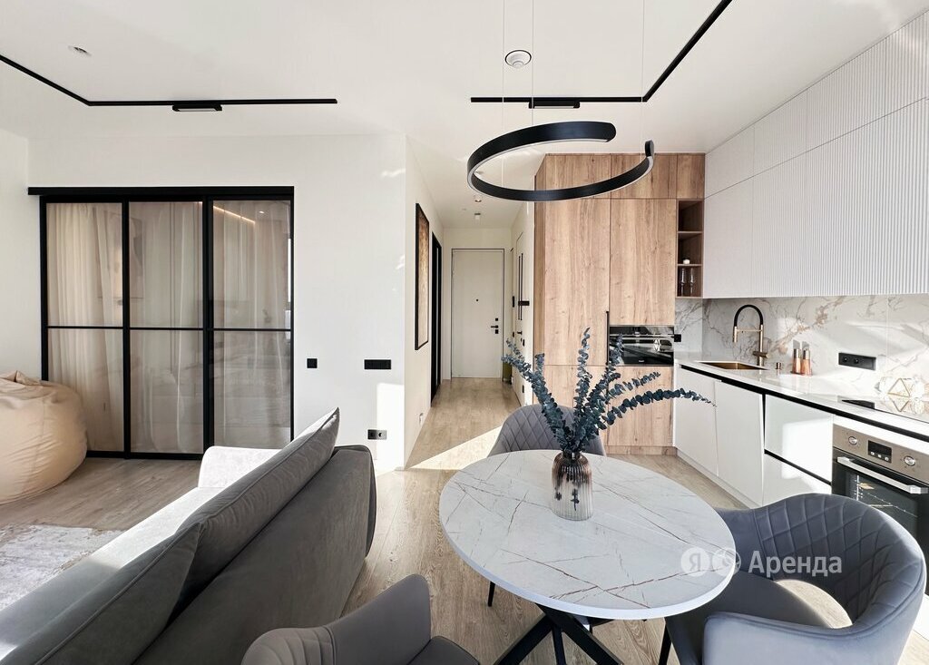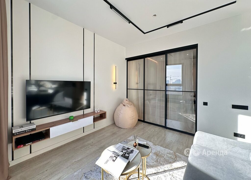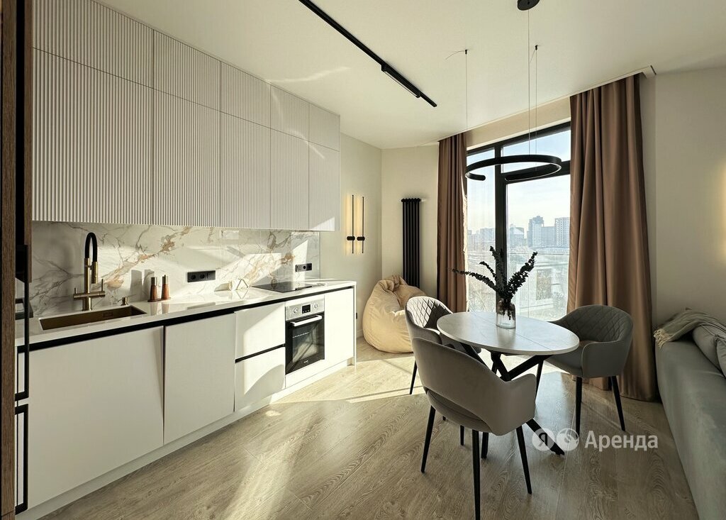 Сдаётся 1-комнатная квартира площадью 45 кв.м. с дизайнерским ремонтом на 8 этаже в 24-этажном доме на срок от 11 месяцев. Из техники есть: