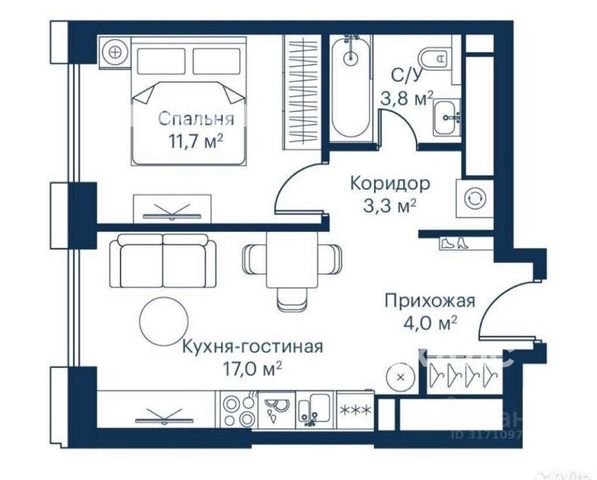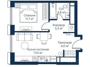 общая площадь 39,7 кв. м на 40 этаже.