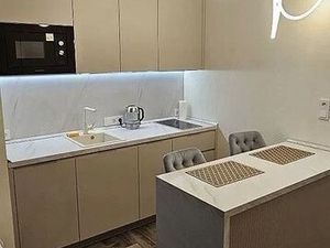 ✅ Кухня-гостинная оборудована вместительным кухонным гарнитуром со встроенной техникой: холодильник, духовой шкаф, СВЧ печь, индукционная варочная панель, посудомоечная машина. Обеденная группа с тв-зоной и 4К телевизором LG 43", удобный раскладной диван с дополнительным спальным местом 150х200.