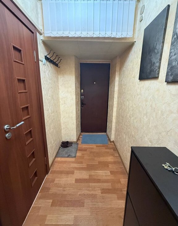 В прихожей имеется ниша для хранения и установлен шкаф-обувница