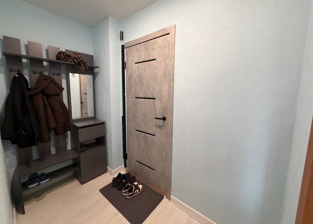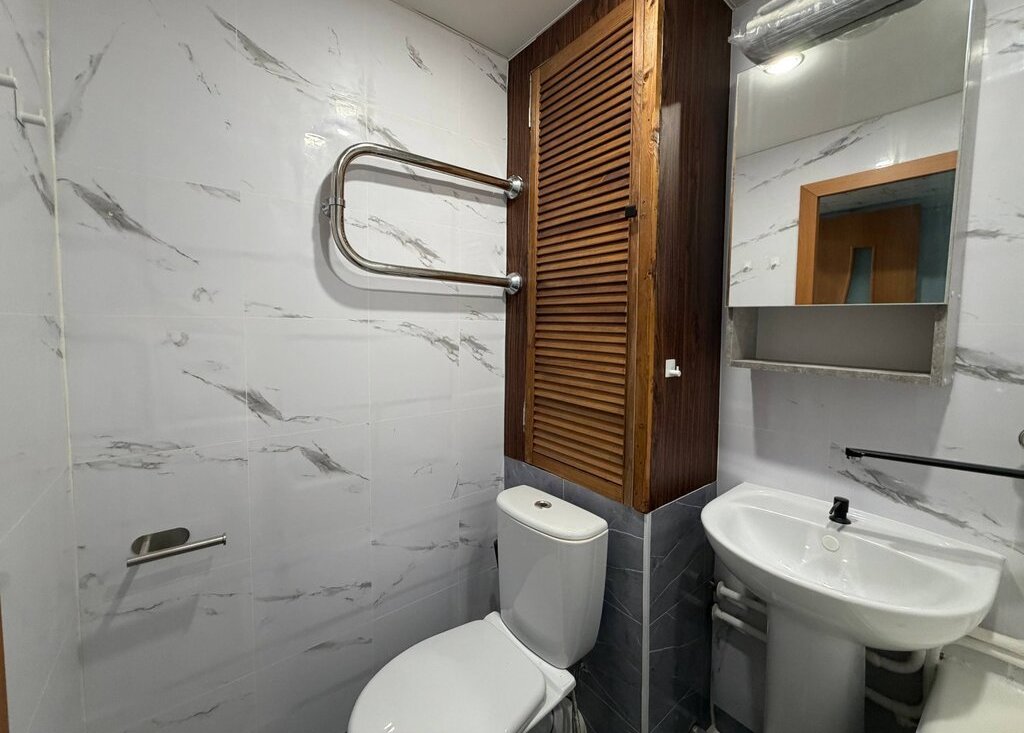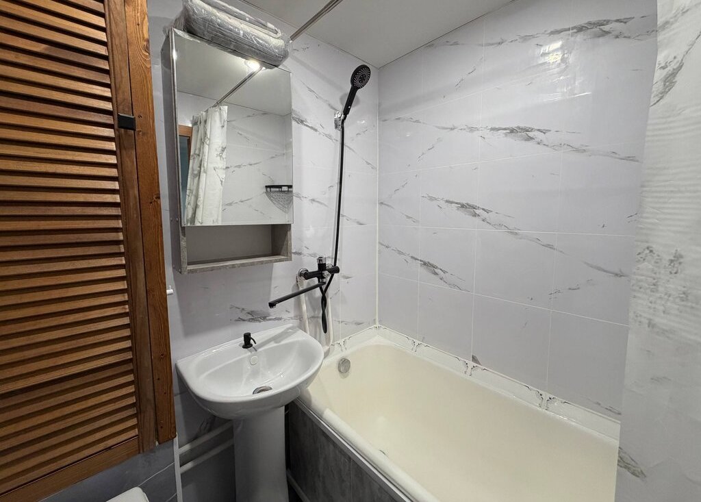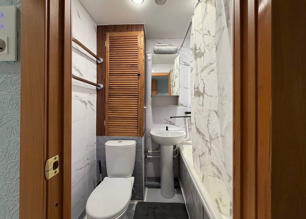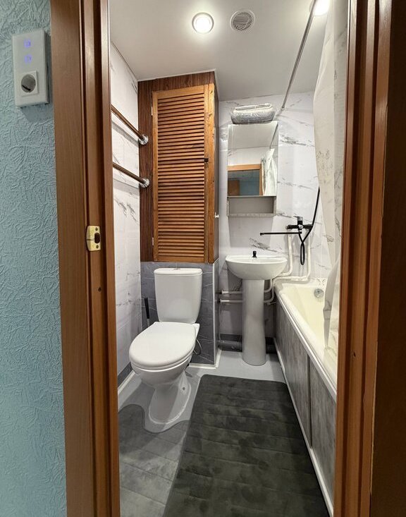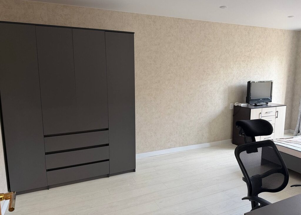 Квартира полностью готова к комфортному проживанию: есть вся необходимая мебель и техника — стиральная машина, холодильник, телевизор, микроволновая печь, чайник, отпариватель и пылесос.