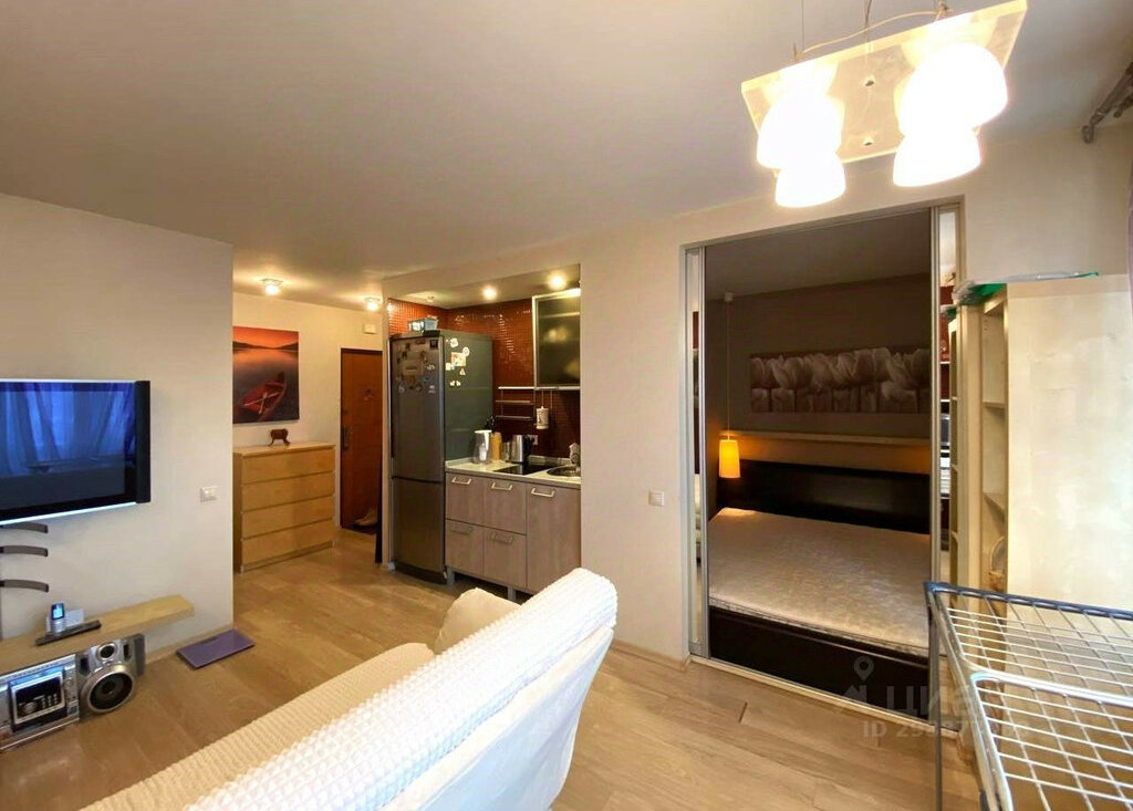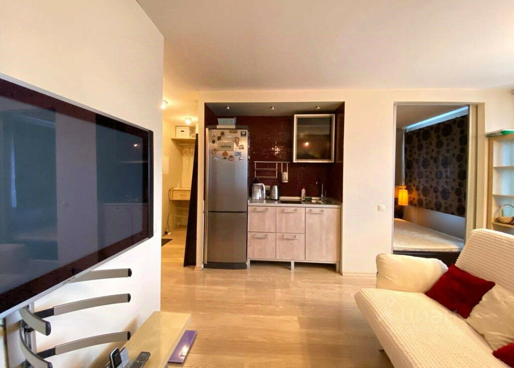 Квартира в прекрасном состоянии. Она имеет удобную нестандартную планировку: отдельное просторное спальное место; кухня-гостинная с местом как для отдыха, так и рабочей зоной; совмещенный санузле; просторная гардеробная и прихожая, выход на балкон. Установлена вся необходимая мебель и бытовая техника для комфортного проживания.