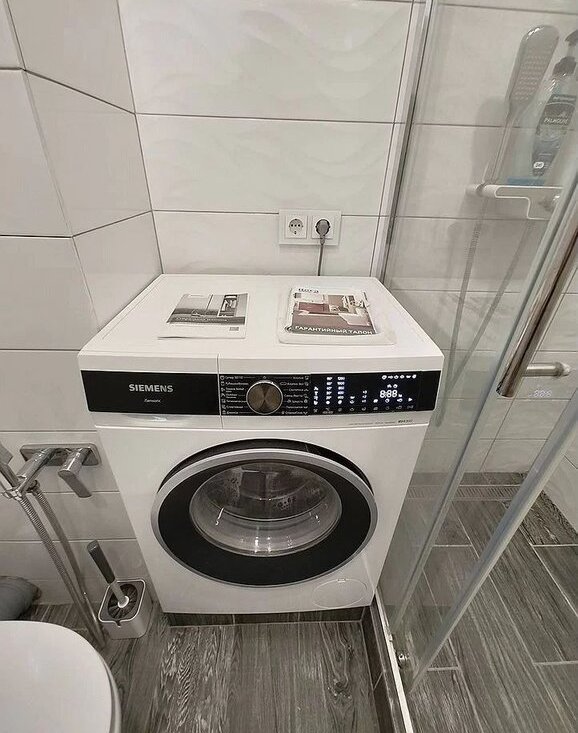 В ванной сантехника Rоса и Grоhе, машинка Siеmеns.