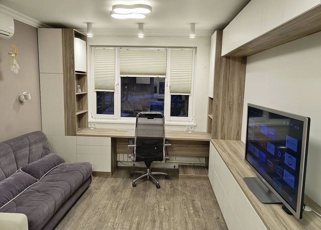 Мебель подобрана под размеры квартиры для оптимального хранения вещей. Диван-кровать Аndеrssеn "Гудвин", детский Аndеrssеn Робин Бобин.
