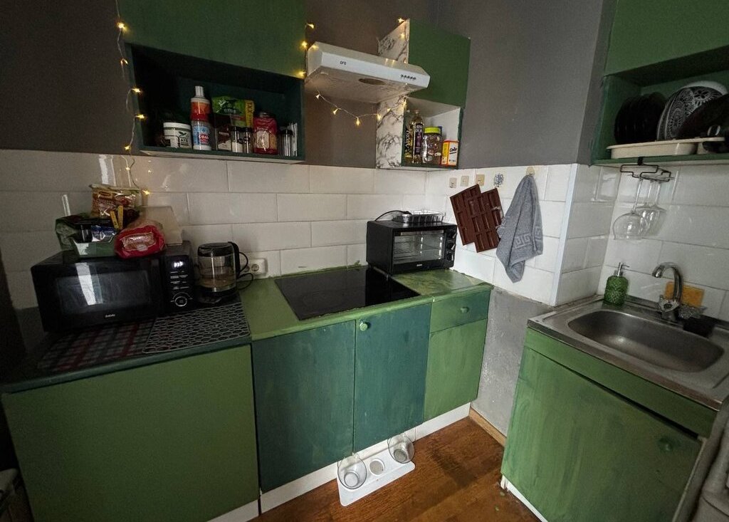 Продаётся частично с мебелью ( оставлю по вашему желанию : диван , комод , тумбочку , вытяжку ) .