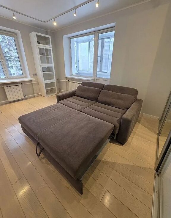 В комнате удобный диван, который раскладывается на 2 спальных места.