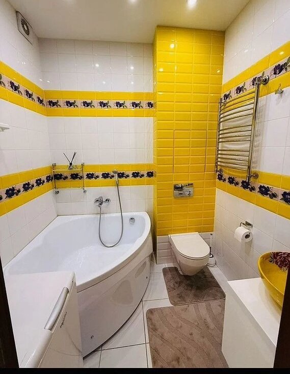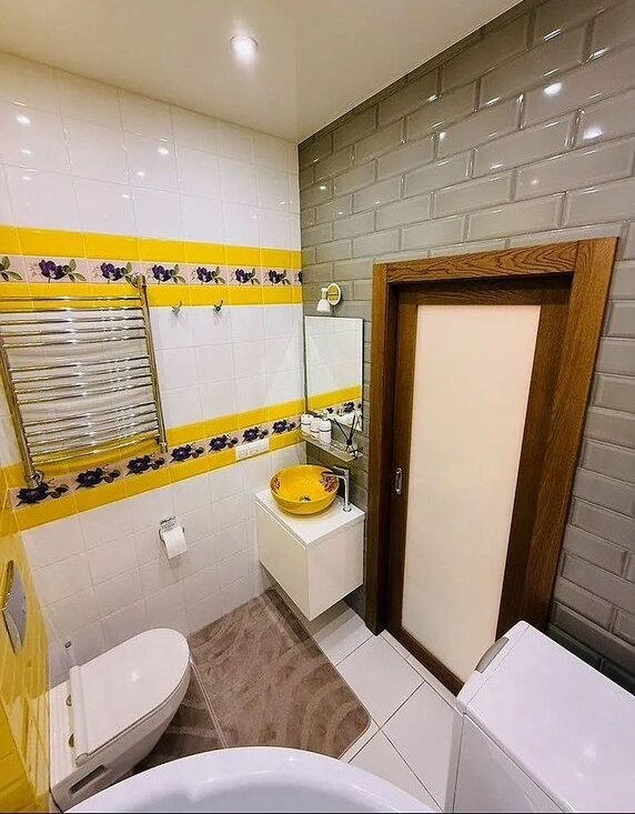 Санузел оснащен джакузи, умывальником,стиральной машиной.