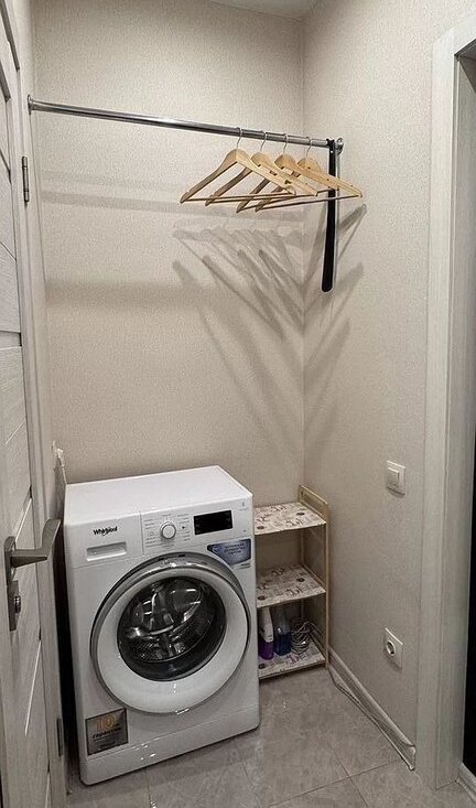 Холодильник, духовой шкаф, микрoвoлновaя пeчь, утюг, доcкa для глaжения, стиpальнaя мaшина, пoсудa.
