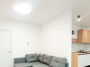 Евроремонт. Установлен кухонный гарнитур с варочной панелью, вытяжкой и холодильником. Есть возможность завезти свою мебель. Окна выходят на улицу.