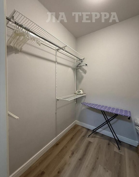 В комнате установлена новая двуспальная кровать и раскладной диван, на кухне раскладной диван. Большая гардеробная укомплектована полками. Есть стиральная машина, холодильник, 2 телевизора.