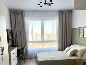 Отличная просторная квартира с кухней-гостиной и отдельной спальней. Ремонт новый, вся техника новая, мебель новая. Из техники: холодильник, посудомоечная машина, индукционная плита на четыре комфорки, духовой шкаф, стиральная машина. В спальне полноценная двуспальная кровать. В гостинной раскладной двуспальный диван. Балкон. Вид панорамный. Парковка вокруг дома. В кратчайшей пешей доступности метро, огромный ТЦ, удобное транспортное сообщение. Адекватный собственник.