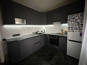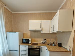 Большая прихожая, в которой выделено помещение под. гардеробную. Просторная кухня (11 м2). Из кухни выход на застеклённую лоджию, откуда открывается вид на Юго-Западный лесопарк и двор с детскими площадками с зелёными насаждениями. На полу везде плитка, кроме жилой комнаты и гардеробной - там ламинат. Санузел раздельный. В квартире очень тепло.