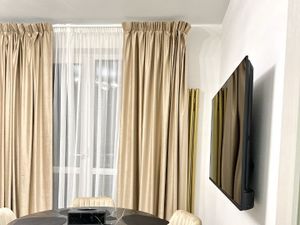 - просторная кухня с уютной гостиной зоной 19 кв.м Полностью оборудована всей необходимой бытовой техникой ( посудомоечная машина, микроволновка, современная варочная панель, духовой шкаф, телевизор, встроенный холодильник), раскладывающийся двуспальный диван с ортопедическим основанием и прекрасный вид из окна.