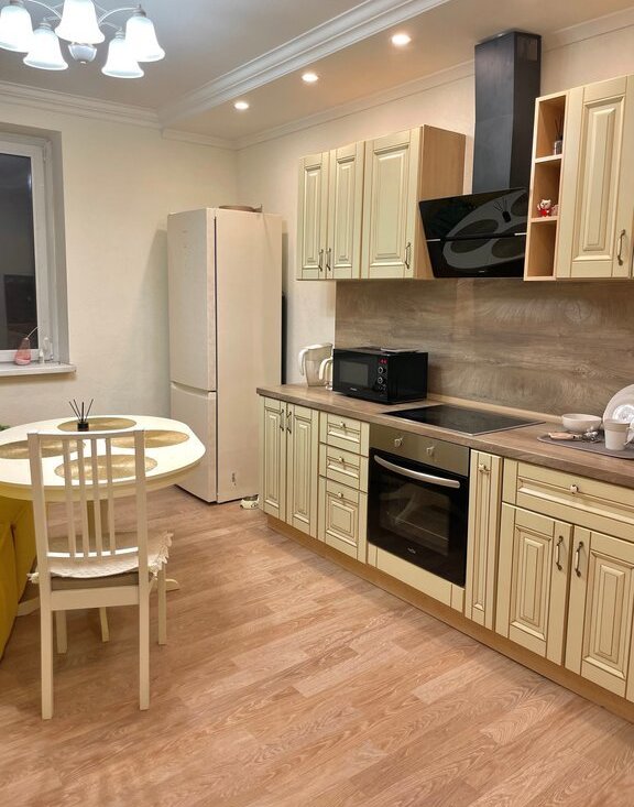 Просторная двухкомнатная квартира с большой кухней и всей необходимой техникой.