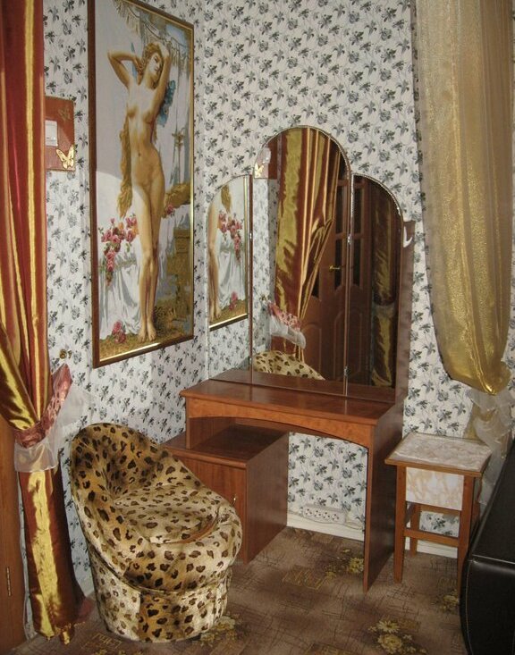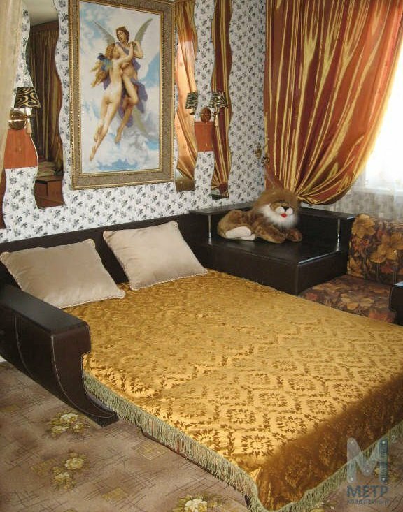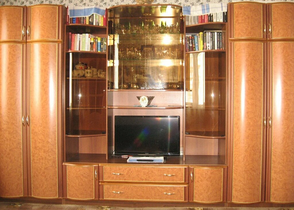 В комнате современная мебель: вместительная стенка; уговой диван (2 спальных места); дамский уголок; тв.