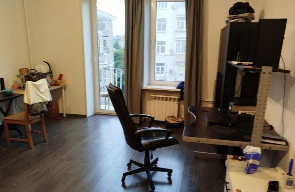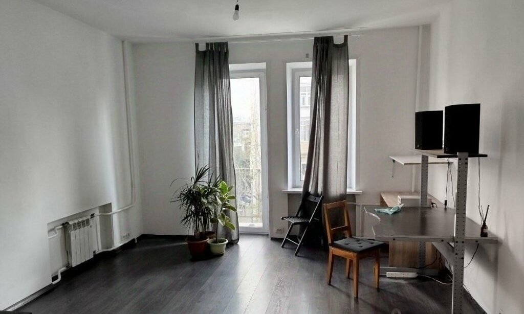 Комната 30 кв в сталинке с двумя окнами и балконом, высоким потолком 3,3м.