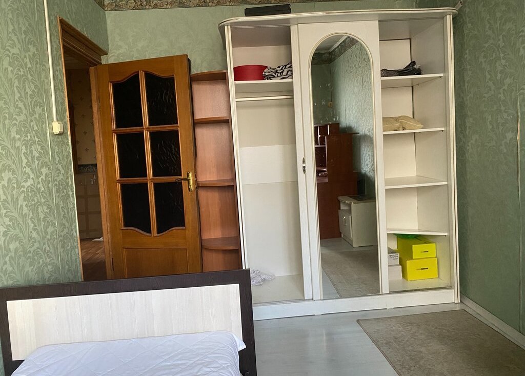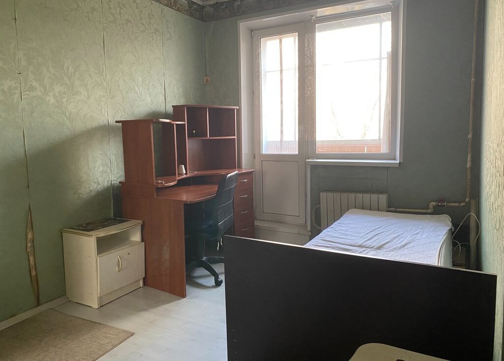 Сдается с мебелью. В комнате есть одноместная кровать, рабочий стол, компьютерное кресло, большой шкаф, две тумбочки, сама комната с выходом на балкон. В квартире из бытовых приборов имеется холодильник, посудомоечная машина, газовая плита, микроволновка, чайник и стиральная машина. Есть Wi-Fi.