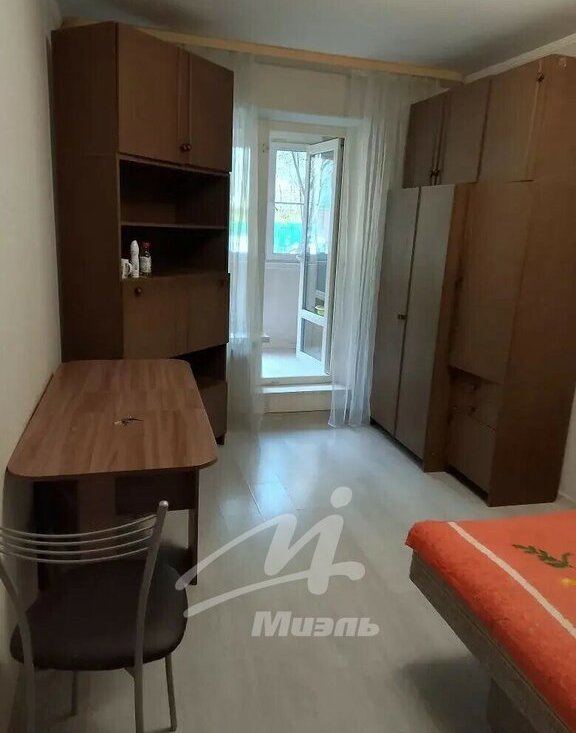 Квартира имеет изолированную планировку, комната с косметическим ремонтом, имеет выход на застеклённый балкон окнами на тихую улицу. Комната полностью оснащена мебелью и бытовой техникой: для сна и отдыха есть раскладывающийся диван, 2 вместительных шкафа, есть свой холодильник. Собственник в квартире не проживает, в двух соседних комнатах живут супружеская пара и девушка.