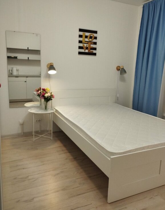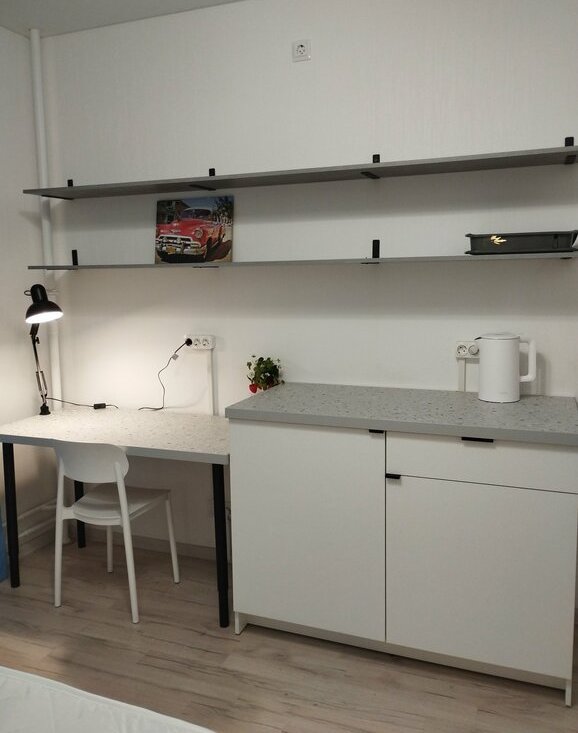 Студии в КОЛИВИНГЕ для ДЕВУШЕК! В каждой студии свой холодильник, СВЧ, кухонная зона, два шкафа, кровать с ортопедическим матрасом, зеркало, дверь с замком. Два общих санузла в коридоре на 4 студии. Очень приятные и веселые соседки.