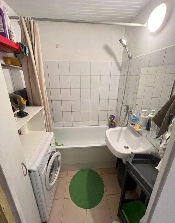Отдельный шкаф на кухне, полка в ванной. Все техника для комфортного проживания есть.