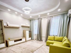 Квартира с мастер-спальней и роскошной мебелью. Капитальный ремонт. Здесь всё создано для вашего повседневного комфорта и прекрасного настроения. В спальне есть гардеробная, а также санузел с ванной и окном. В квартире два санузла (гостевой и хозяйский).
