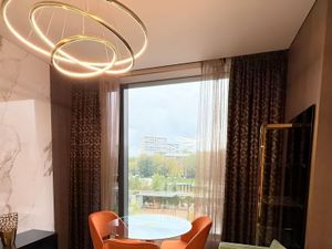 Функциональная планировка: кухня-гостиная, спальня с гардеробной, совмещенный санузел с ванной , коридор со встроенными шкафами. Квартира полностью меблирована( кровать кинг-сайз) ,укомплектована бытовой техникой премиум класса :холодильник Liebherr