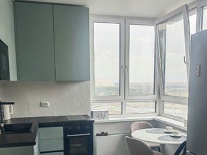 Уютная кухня с диванчиком 8,3 кВ,м, огромная лоджия 1,7 кВ.м, чтобы пить кофе и обозревать окрестности, комната 12,1 кВ.м с выходом на лоджию и комната 17,1 кВ.и с эркером.