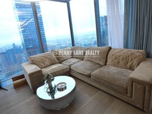 Квартира расположена на 2 этаже 12-этажного дома. Эксклюзивная дизайнерская отделка выполнена преимущественно в светлых оттенках. Планировка квартиры включает в себя: кухню-гостиную с возможностью изолирования кухни (трансформации в переговорную комнату), санузел с душевой кабиной, мастер-блок с ванной комнатой и гардеробной.