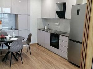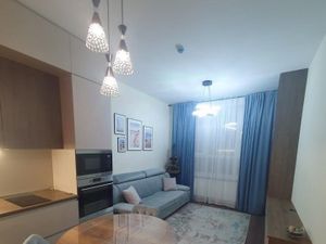Дорогой качественный ремонт в европейском стиле. Стеклянные матовые двери, сантехника и мебель от лучших производителей, вся нужная бытовая техника: посудомойка, микроволновка, стиральная машина, холодильник, телевизор, пылесос. Две спальни, два санузла, гардеробная и хозяйственная комната. Установлены кондиционеры, подогрев пола, жалюзи с электроприводом, есть увлажнители.
