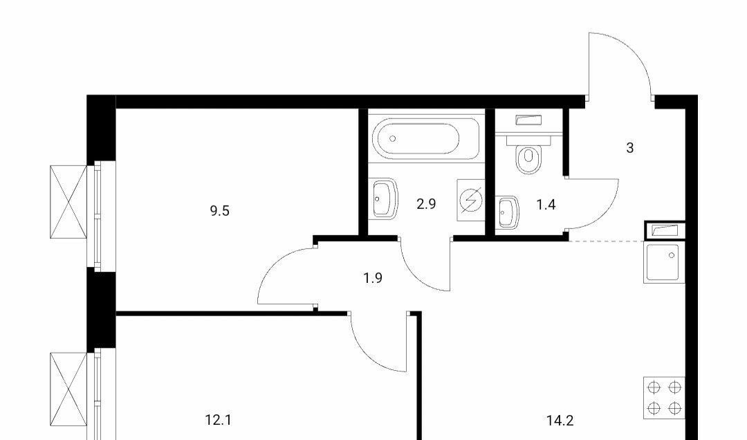 - **Тип:** евродвушка (одна спальня, кухня-гостиная).