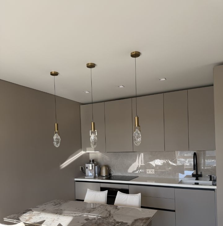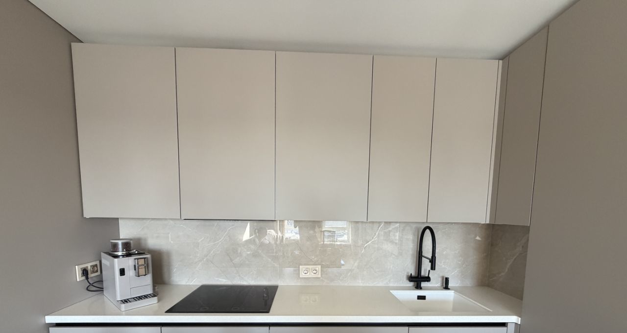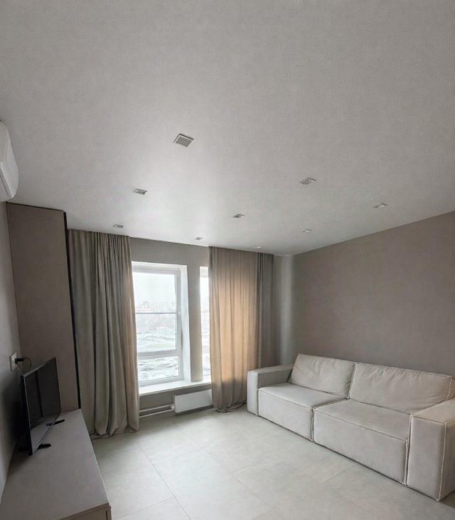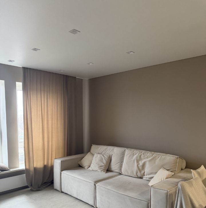 Интерьер выполнен в спокойной нейтральной гамме: светлые оттенки, лаконичные формы, много воздуха и света. Квартира выглядит цельно, современно и аккуратно, в едином стиле без лишних деталей.