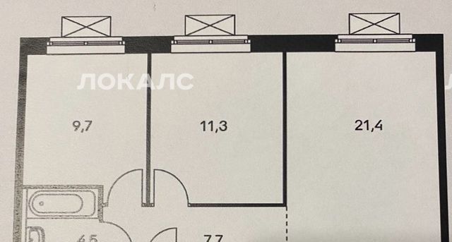2-к кв. Москва № 100 кв-л, 1к2 (52.0 м²)