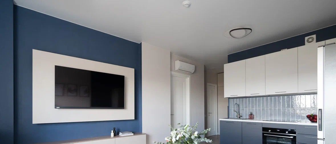 - цифровое управление: Wi-Fi роутер с интернетом 100Мбит/сек; умный дверной глазок, шлагбаум и домофон работают через приложение управляющей компании; установлены датчики дыма и система оповещения о ЧС;