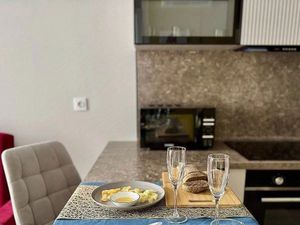 Имеется вся необходимая мебель и бытовая техника, кондиционер, телевизор, wi-fi роутер, стиральная машина, холодильник, кухонная техника, посуда.