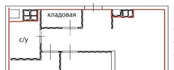 Кухня и гостиная совмещены в единую зону. Санузел с ванной. Кладовая. Две изолированные комнаты.
