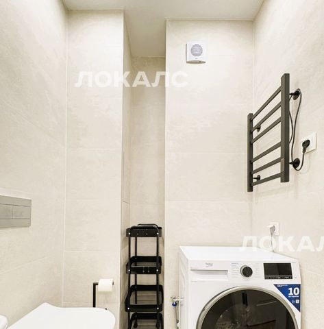 Зона прихожей с большим зеркалом и системой хранения. Для арендаторов есть пылесос, утюг, гладильная доска. В санузле полноразмерная стиральная машина с функцией сушки.