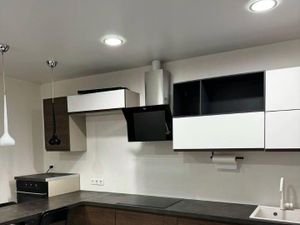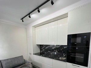 Есть большой современный телевизор, посудомойка (60 см), духовой шкаф, индукционная варочная панель, большой холодильник, стиральная машина и фильтр для воды питьевой воды, установлены кондиционеры. Очень много мест для хранения! В спальне кровать 180 см на 200 см с подъёмным механизмом, в детской или кабинете кровать тоже с подъёмным механизмом. В зоне гостиной раскладной диван.