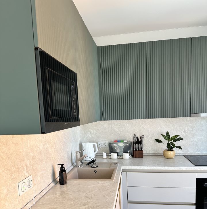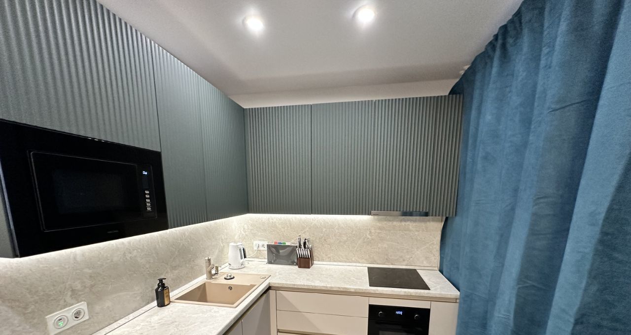 Сдается новая уютная квартира с дизайнерской мебелью на заказ на длительный срок. В кухне фильтр воды, измельчитель в раковине, индукционная плита, духовой шкаф, микроволновка, посудомоечная машина. В спальне кровать с подъемным механизмом и ортопедическим матрасом. В гостиной раскладывается диван. Все новое, еще никто не жил в квартире. Видео звонок на входной двери в квартиру. Гостиная отделена дверью-купе. Делалось под себя, но на работу ездить оказалось дольше.